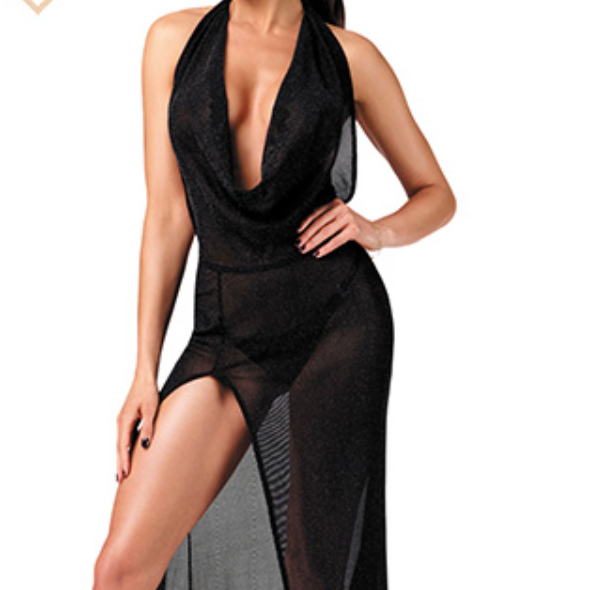 Sensuelle et rayonnante, cette robe longue confectionnée dans un tulle fluide parsemé de fils argentés incarne l'élégance avec une touche de provocation. Conçue pour séduire, elle est parfaite pour les femmes qui aiment éblouir.