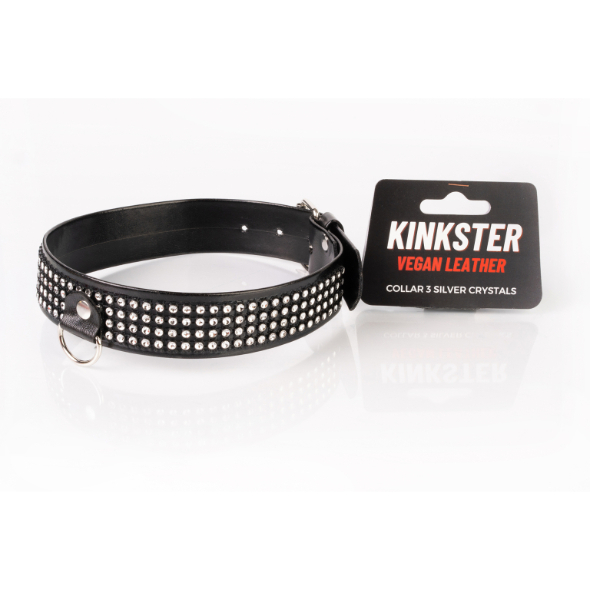 Kinkster – Cuir végétalien – Fait main – Collier avec des cristaux argentés