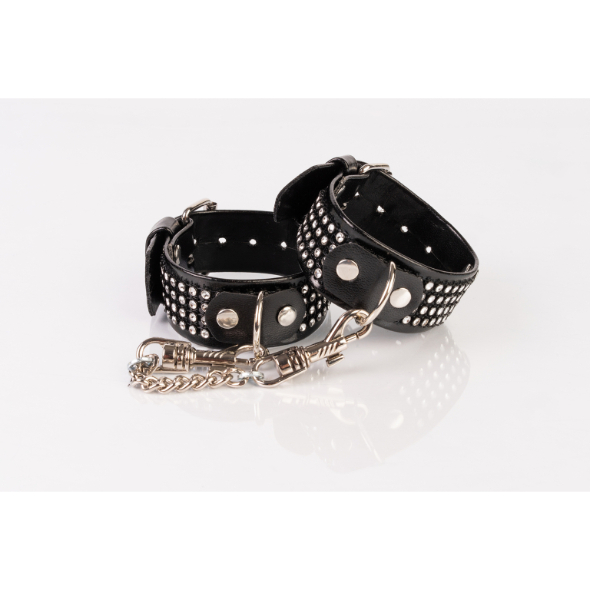 Kinkster – Cuir végan – Fait main – Menottes noires strass argenté