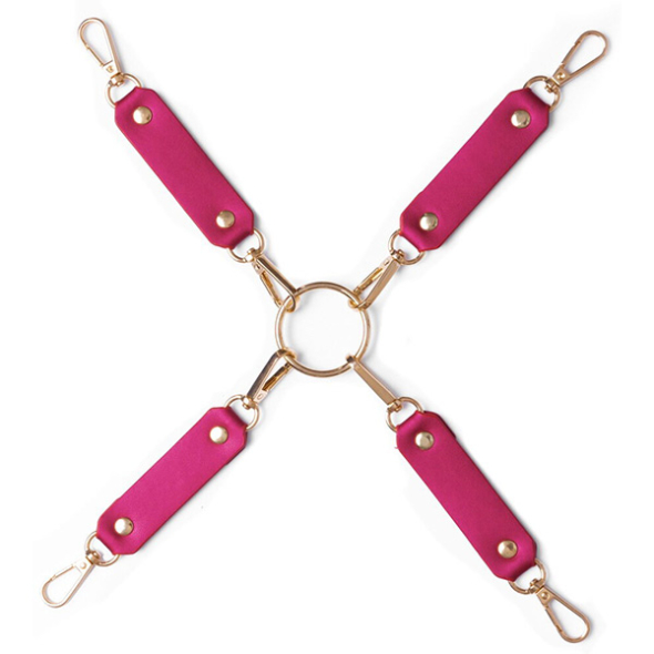 Ensemble de bondage 6 pièces Bad Kitty en similicuir perle Hot Pink raffiné avec une finition nacrée sophistiquée. Des ferrures et chaînes dorées, ainsi que des strass scintillants, soulignent son look tendance et glamour. Un ensemble de bondage élégant pour les curieux et les initiés, comprenant une laisse, un masque et un bâillon pour des jeux variés et originaux. Les sangles et menottes confortables s'enfilent rapidement et sont réglables grâce à des boucles, tandis que les chaînes sont amovibles grâce à des mousquetons.